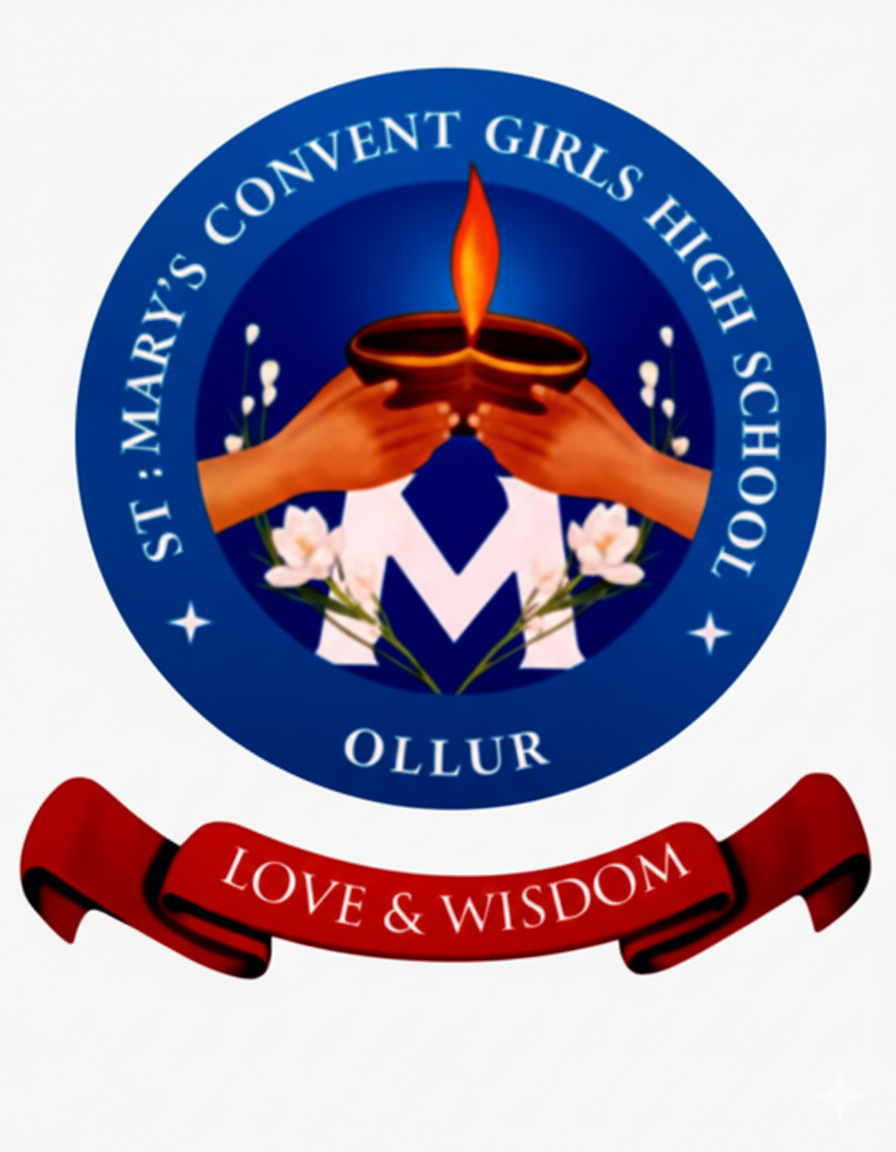 Just as the lily symbolizes the purity of the Blessed Virgin Mary, the lilies encircling the emblem signify that the students of St. Mary’s should become pure white blossoms of knowledge and love, spreading the fragrance of service throughout the land.